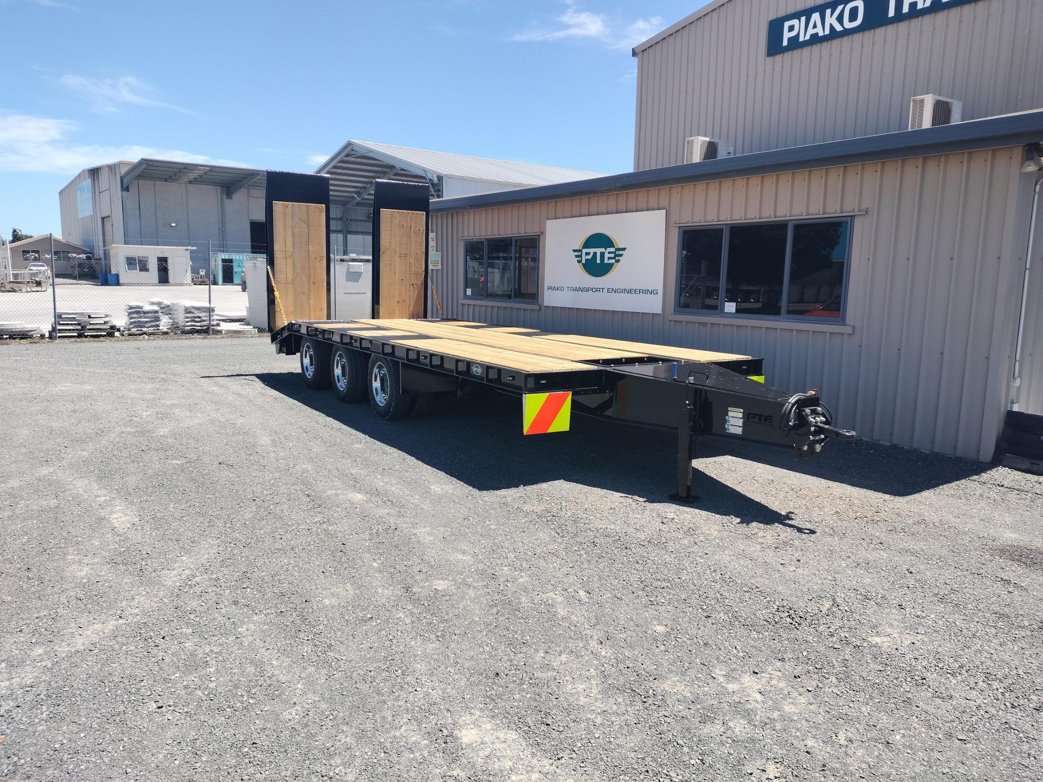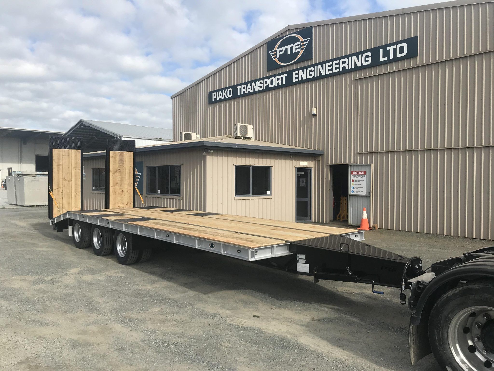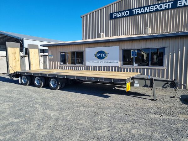 A solid spec simple trailer with an 8000mm deck (6900mm forward length), 2.5m wide, and 50mm H3 treated pine deck. Fitted with 17 load anchorages per side rated to 18T.