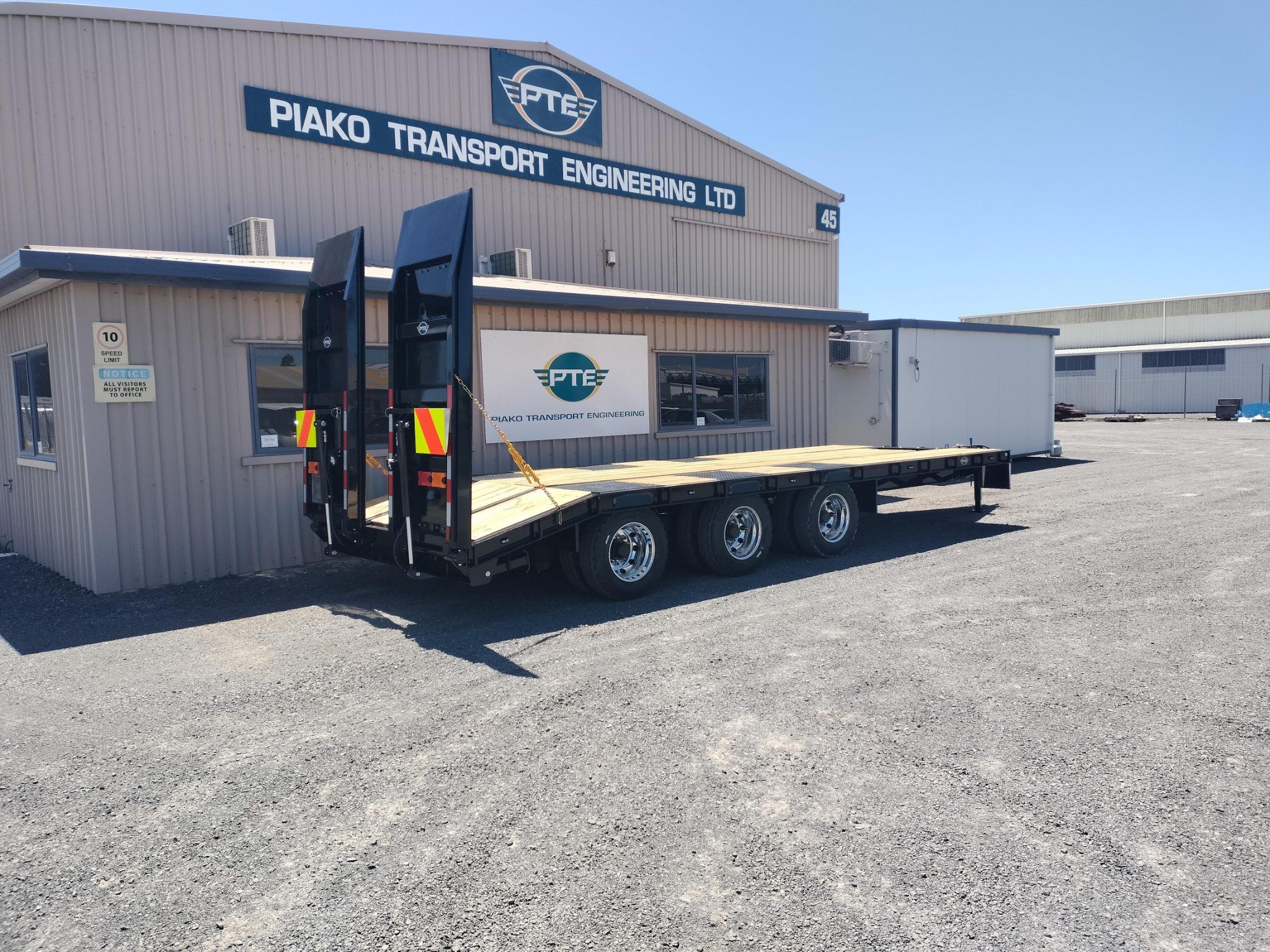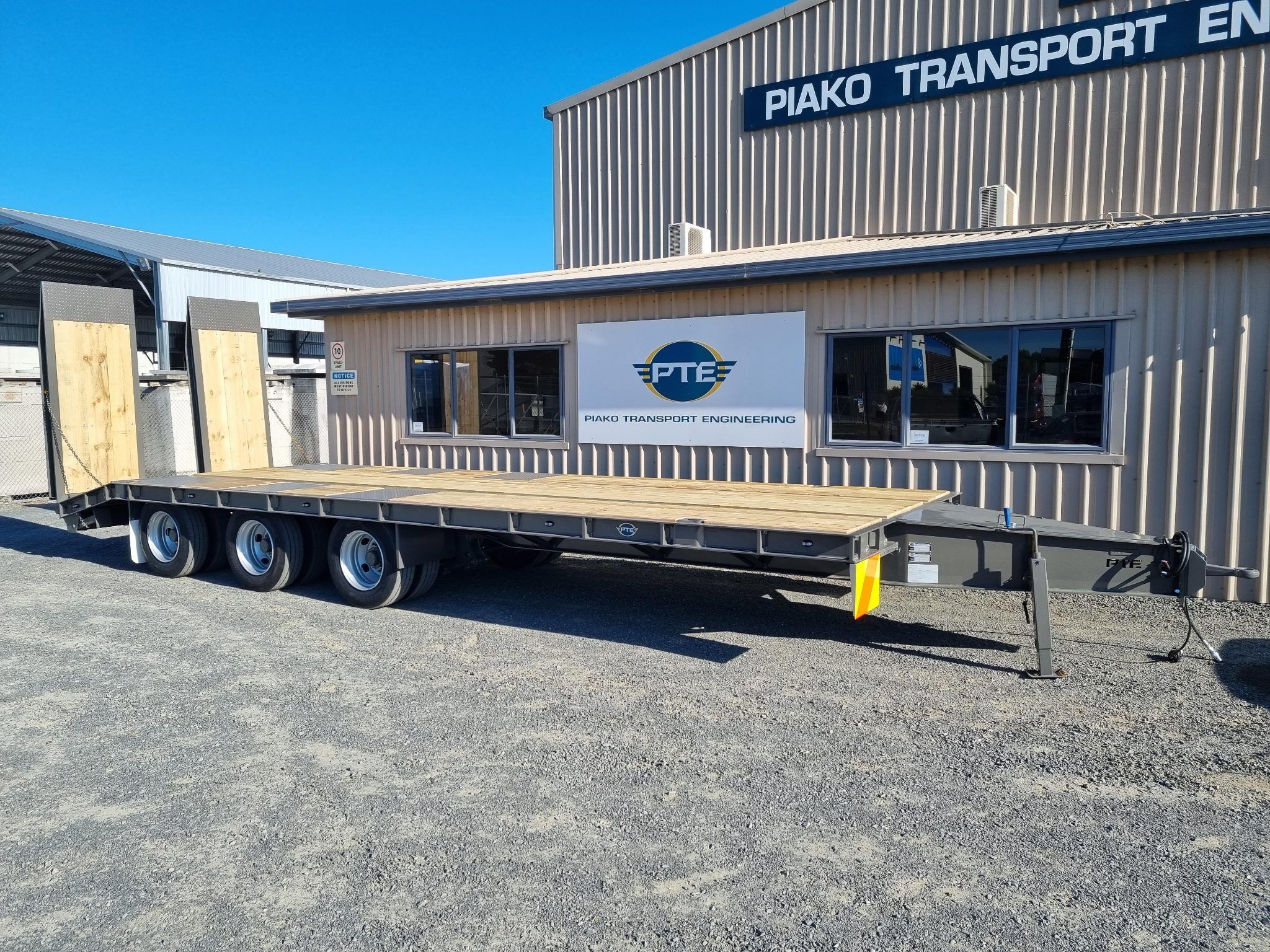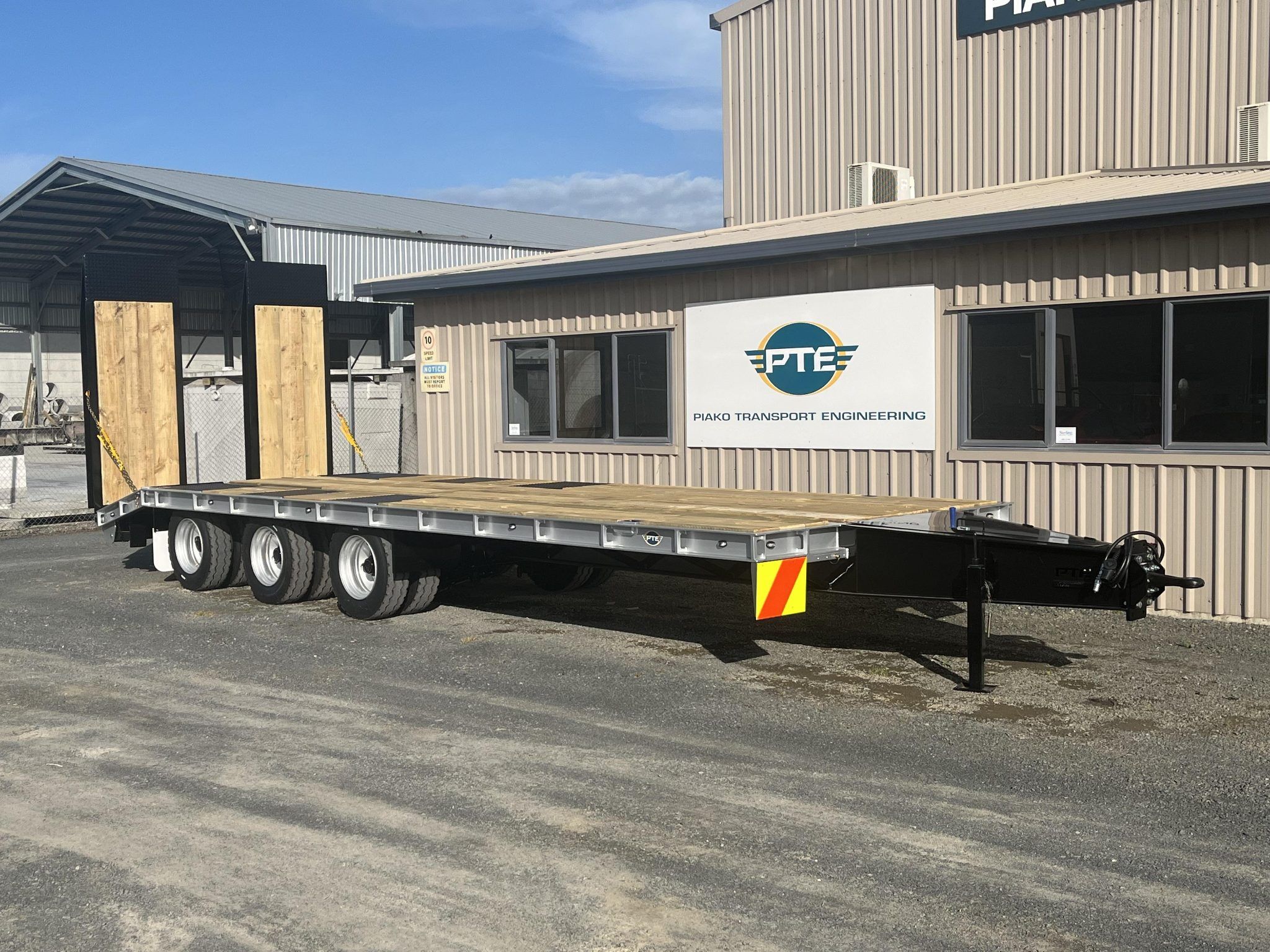 A solid spec simple trailer with an 8000mm deck (6900mm forward length), 2.5m wide, and 50mm H3 treated pine deck. Fitted with 17 load anchorages per side rated to 18T.